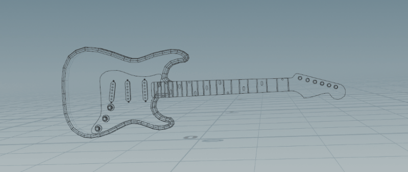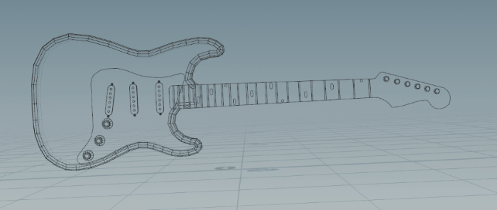 I began working on a procedural model of a guitar. The idea is to drive it with a few input shapes and get a fully modeled and detailed 3d model as an output. At the moment it is being modeled after a Stratocaster but because it is procedural, many variations could be produced with a few changes to the inputs.